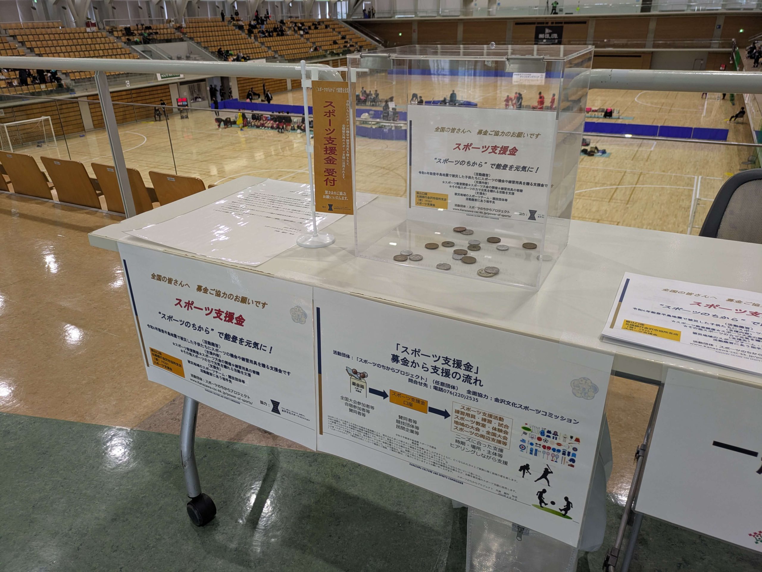 スポーツ支援金の趣旨に賛同いただき募金箱を設置させてもらいました。募金にご協力いただきありがとうございます